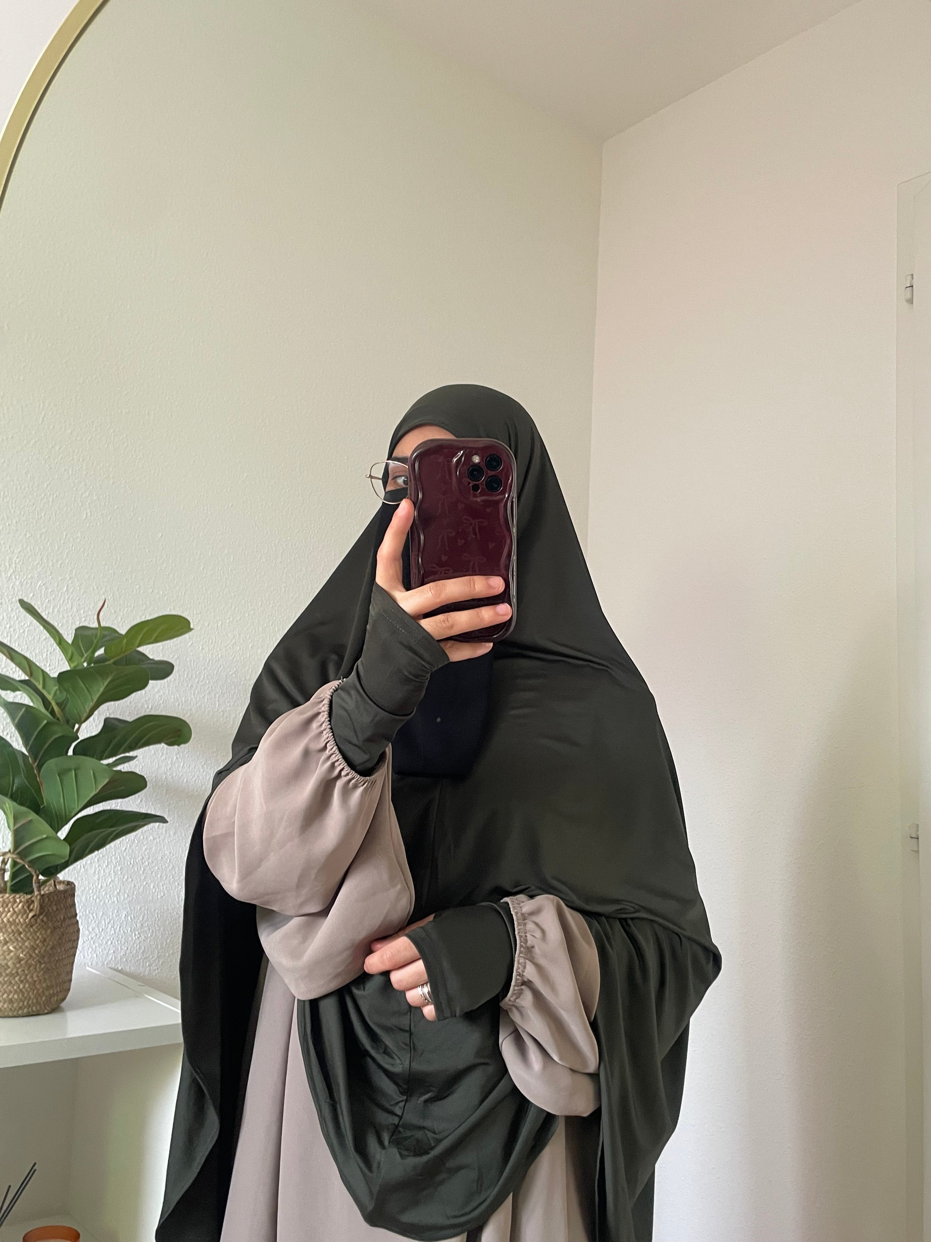 Khimar Sitr en jersey premium vert kaki avec manches incluses